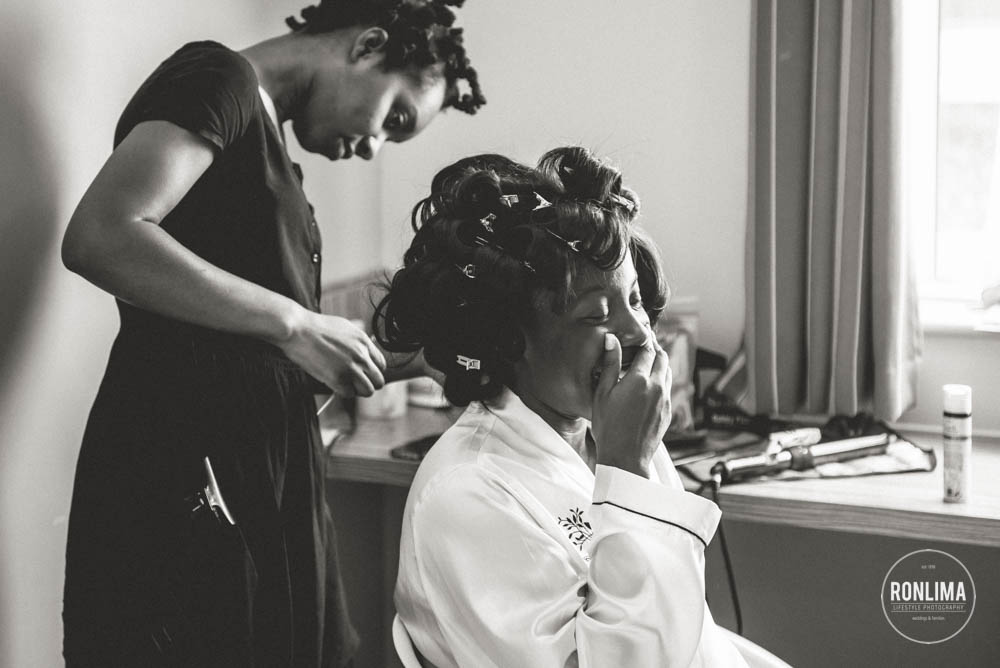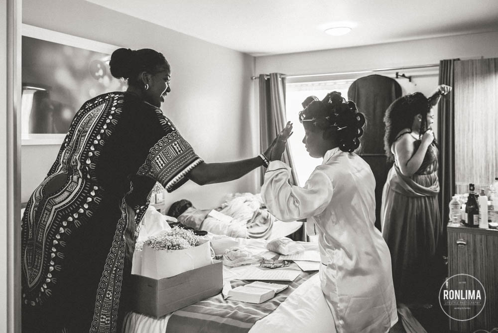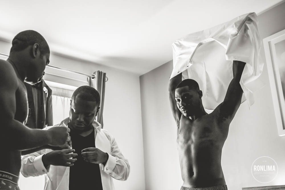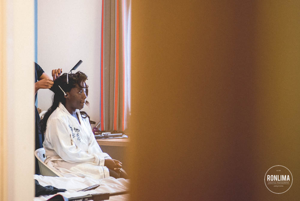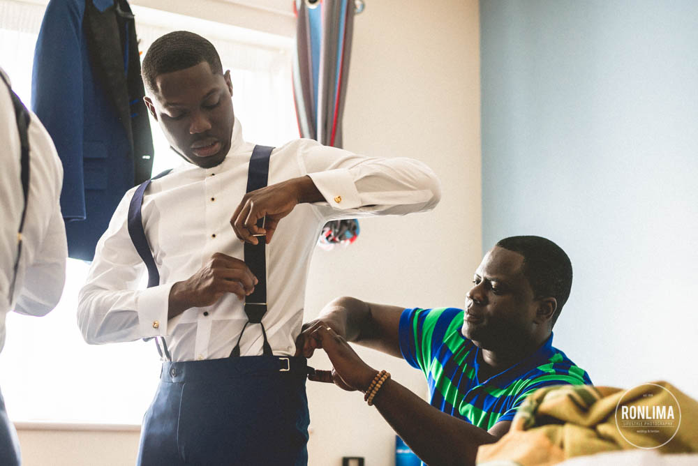 Começamos o dia fotografando os noivos e os padrinhos em um hotel próximo a estação de Vauxhall, em Londres. Eles reservaram vários quartos em 2 andares do hotel – um andar para o noivo e padrinhos e outro para a noiva e madrinhas – ali já começou a festa! Muita música e risada entre um quarto e outro.