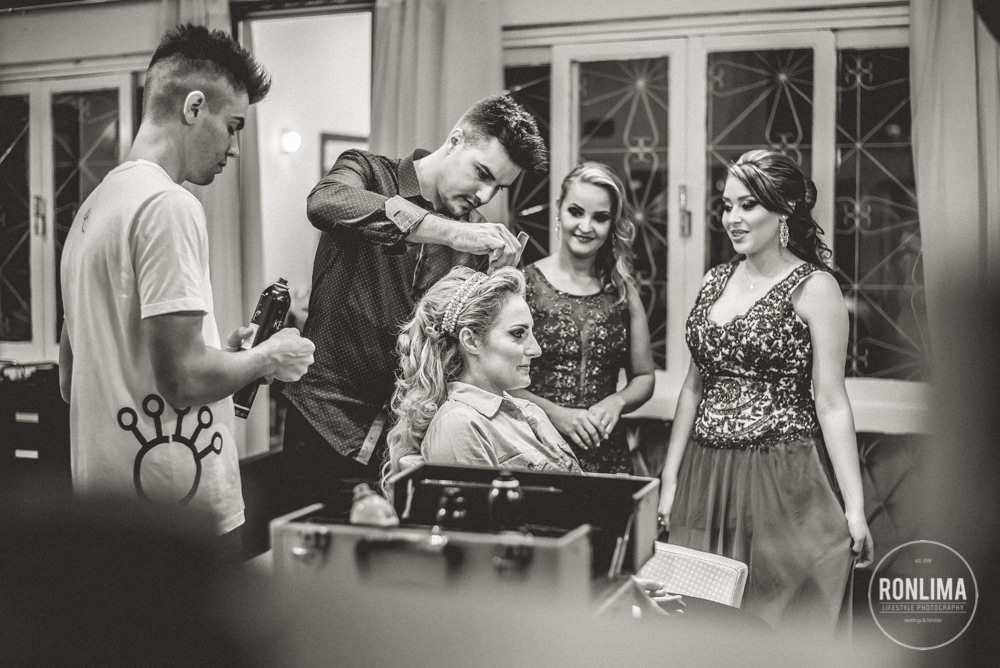 Durante todo o dia do casamento, os amigos estiveram por perto querendo dar apoio ao casal e participar dos momentos importantes do casamento.